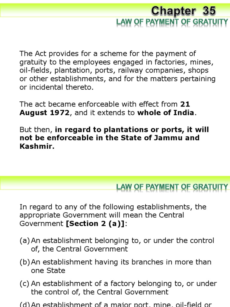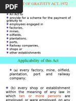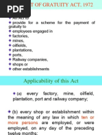 The Act provides for a scheme for the payment of gratuity to the employees engaged in factories, mines, oil-fields,