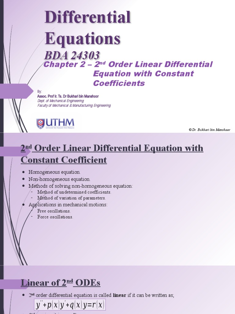 Chapter 2 - 2nd Order Linear Differential Equation With Constant Coefficients - Part 1