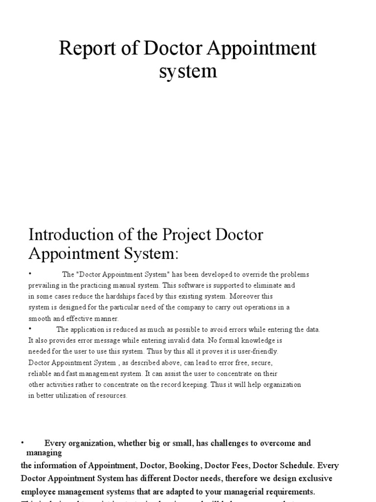 The purpose of Doctor Appointment System is to automate the existing manual