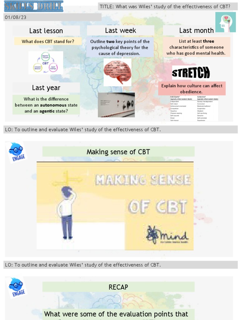 LO: To outline and evaluate Wiles’ study of the effectiveness of CBT.