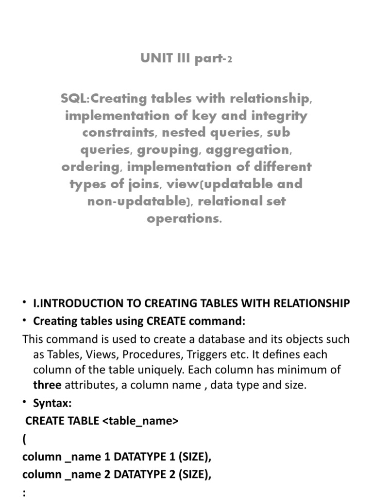 • I.INTRODUCTION TO CREATING TABLES WITH RELATIONSHIP