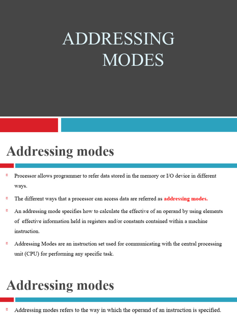 ◻ The different ways that a processor can access data are referred as addressing modes.
