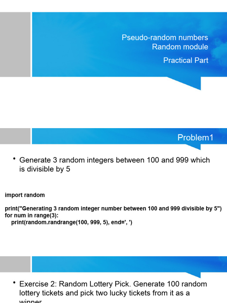 • Exercise 2: Random Lottery Pick. Generate 100 random
