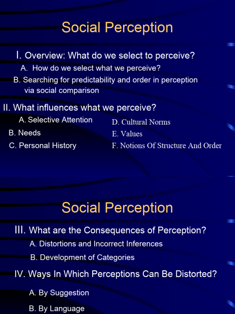 VI. Social Perceptions and Impression Formation