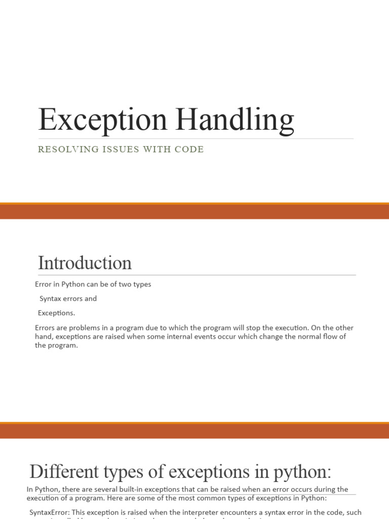 execution of a program. Here are some of the most common types of exceptions in Python: