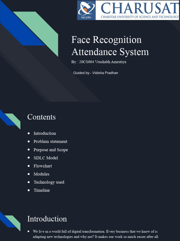 ● All these requirements are set to be fulfilled in my project which is Face Recognition