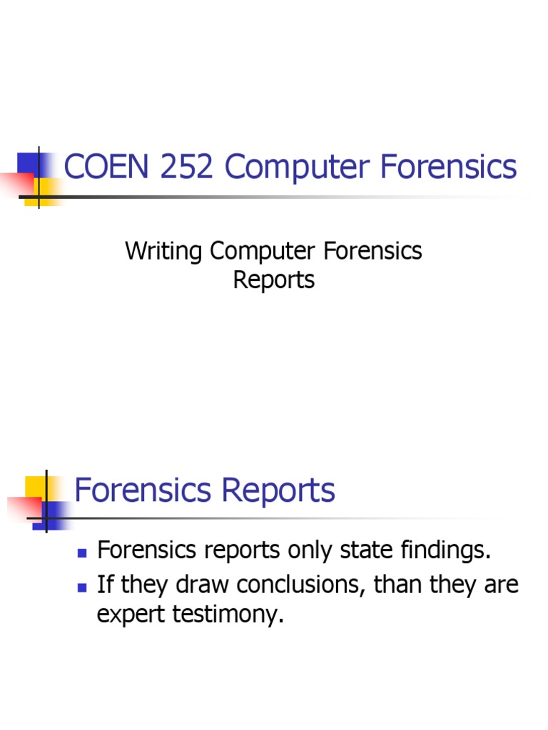 Forensics reports only state findings. If they draw conclusions, than they are expert testimony.