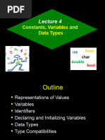 ‘A’, ‘v’, and “?” are character literals • true or false (no quotes!)