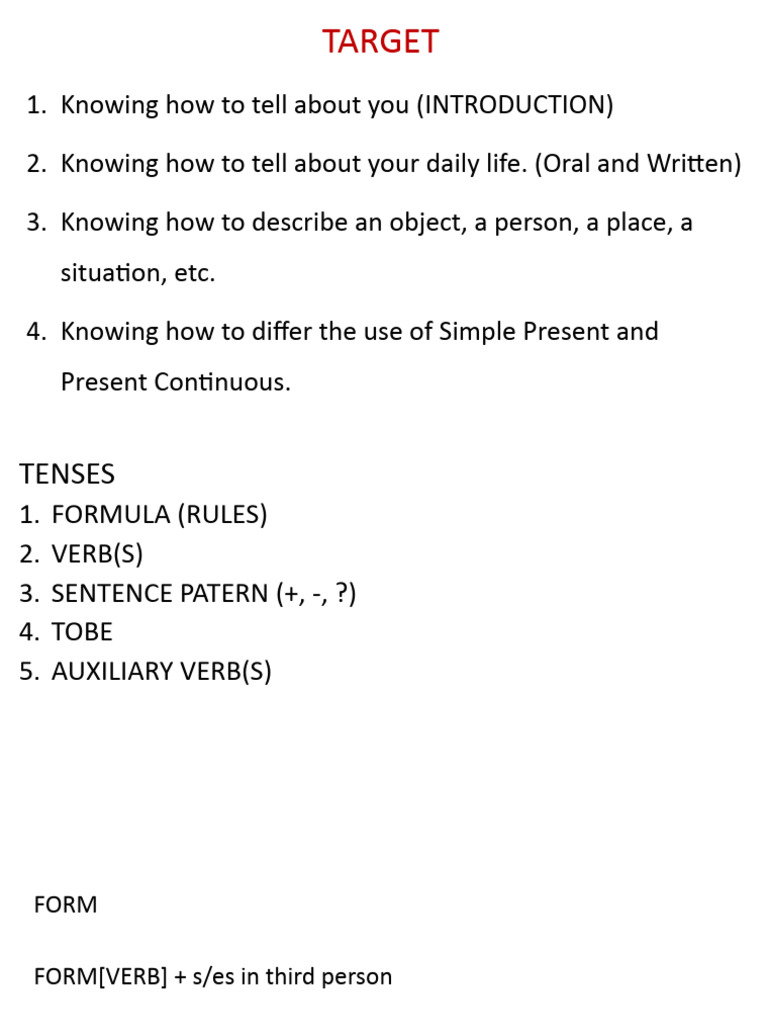 2. Knowing how to tell about your daily life. (Oral and Written)
