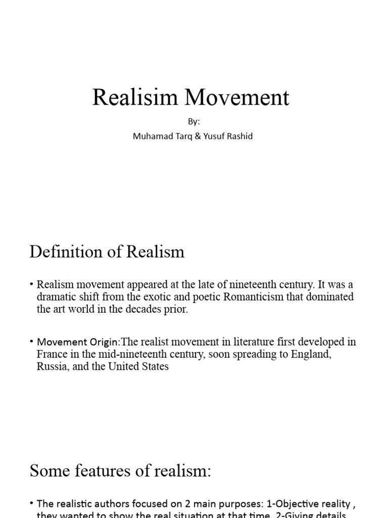 • Realism movement appeared at the late of nineteenth century. It was a