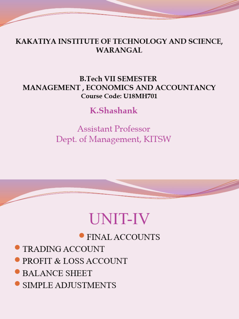 1. Preparation of Trading Account and P&L A/c