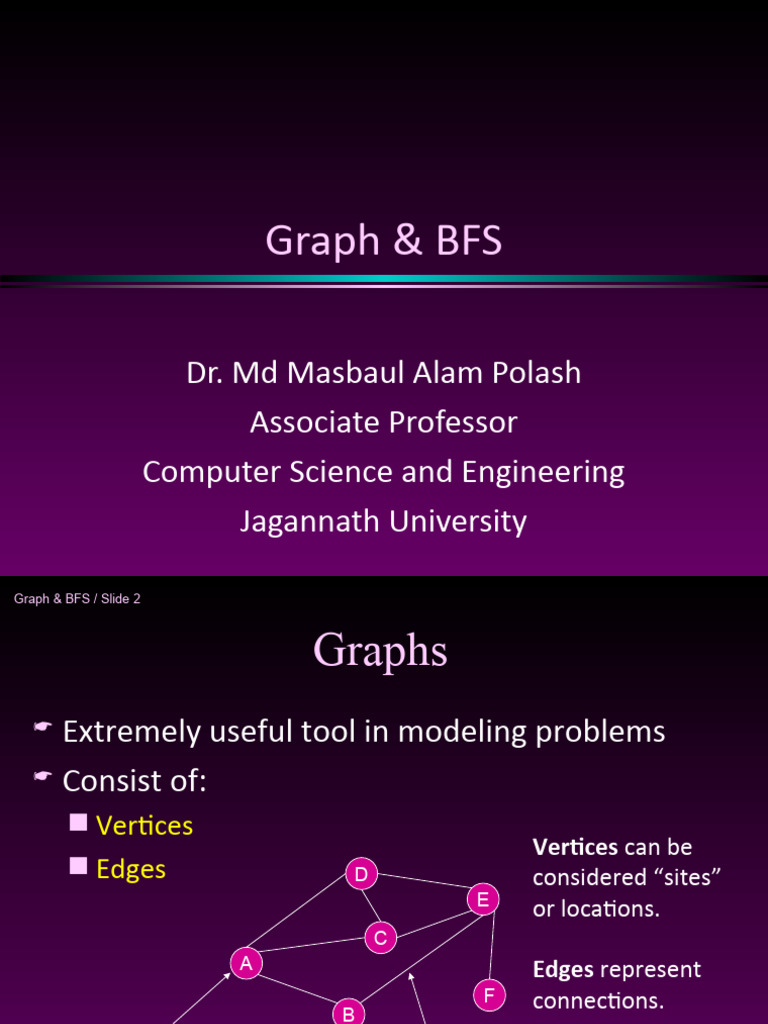 A graph G=(V, E) consists a set of vertices, V, and a set of edges, E.