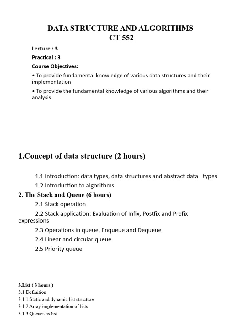 1.Concept of data structure (2 hours)