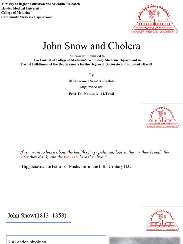 o Interested in the cause and spread of cholera.