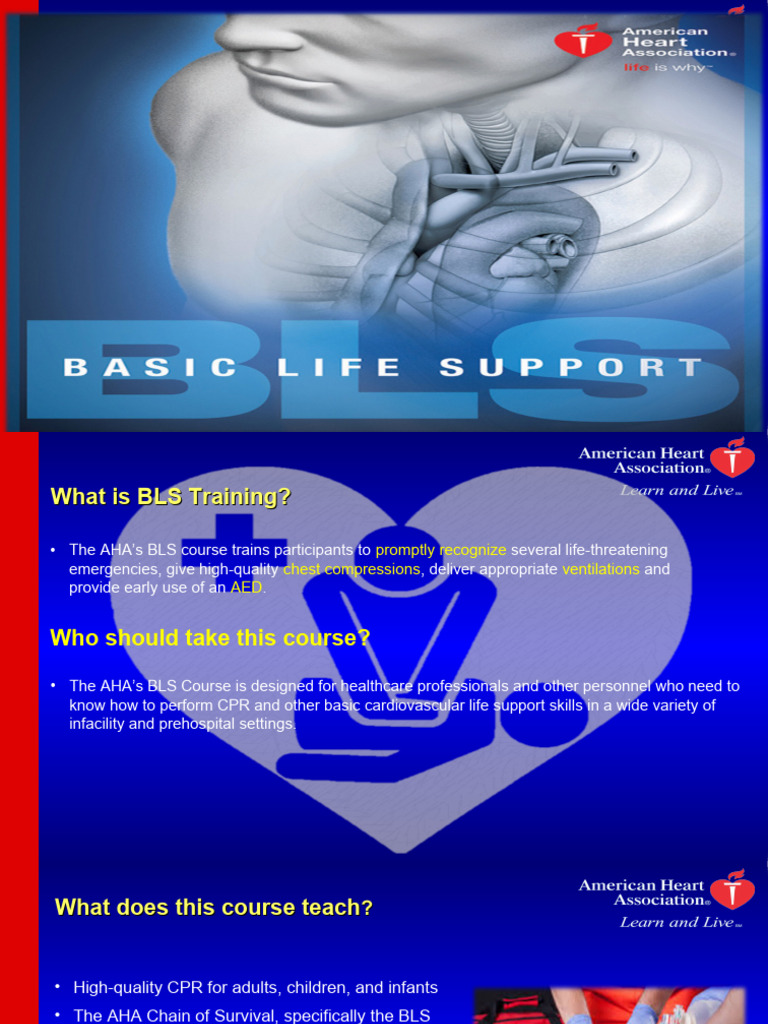 • The AHA’s BLS Course is designed for healthcare professionals and other personnel who need to