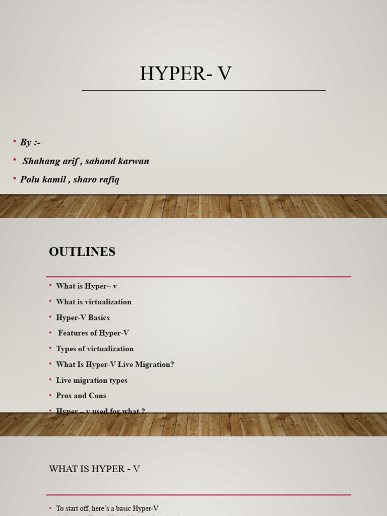 • Hyper-V Live Migration is the possibility to migrate any of your Virtual Machines between your