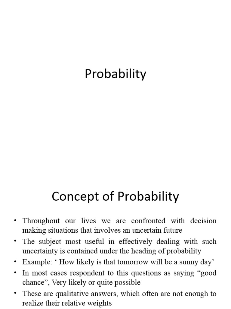 • Example: ‘ How likely is that tomorrow will be a sunny day’