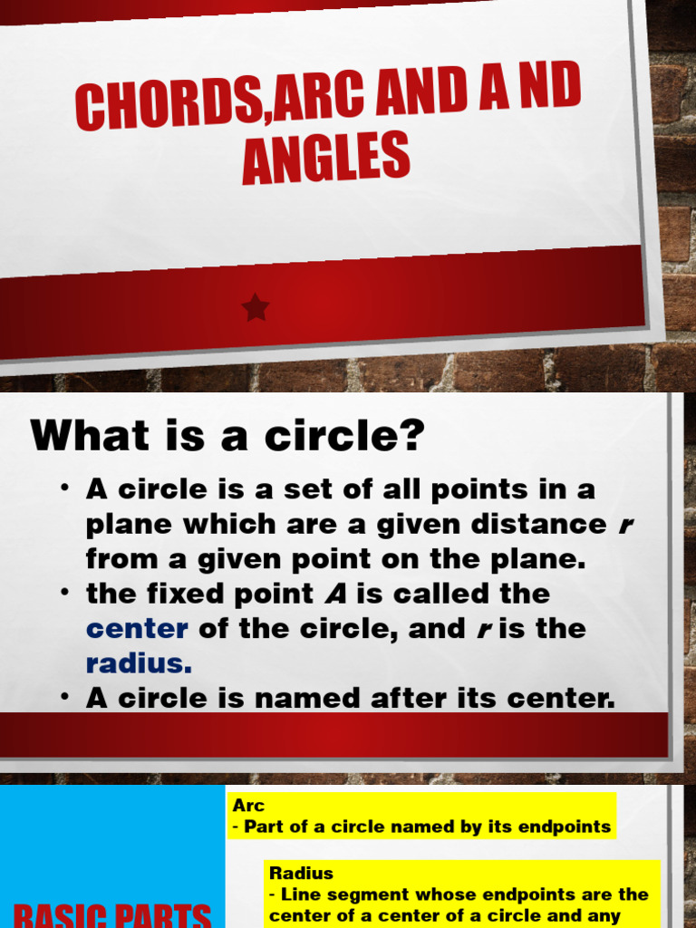 CENTRAL ANGLE Is an angle whose vertex is the CENTER of the