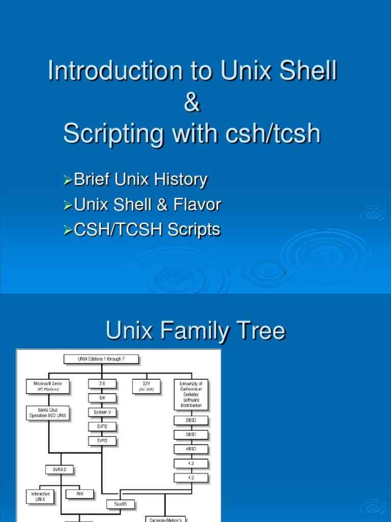 Unix History Unix Shell & Flavor CSH/TCSH Scripts