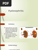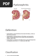 Definition It is Bacterial infection of the renal pelvis, tubules and interstitial tissue of one or both kidneys Pathophysiology and aetiology Infection usually ascends from the urethra Haematogenous spread is rare Frequently due to ureterovesical reflux