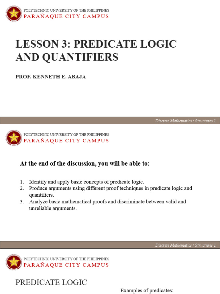 LESSON 3: PREDICATE LOGIC