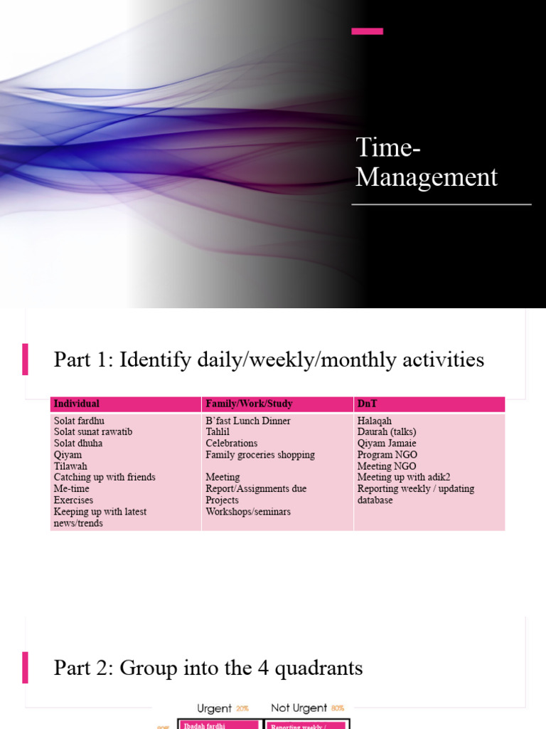 Part 1: Identify daily/weekly/monthly activities