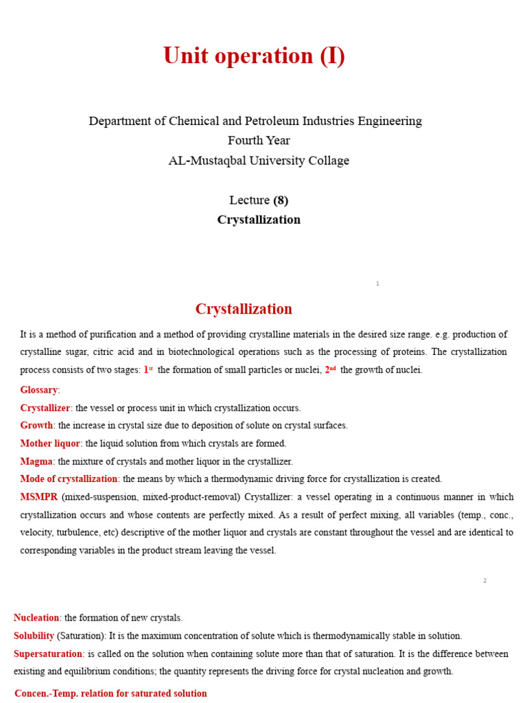 crystalline sugar, citric acid and in biotechnological operations such as the processing of proteins. The crystallization