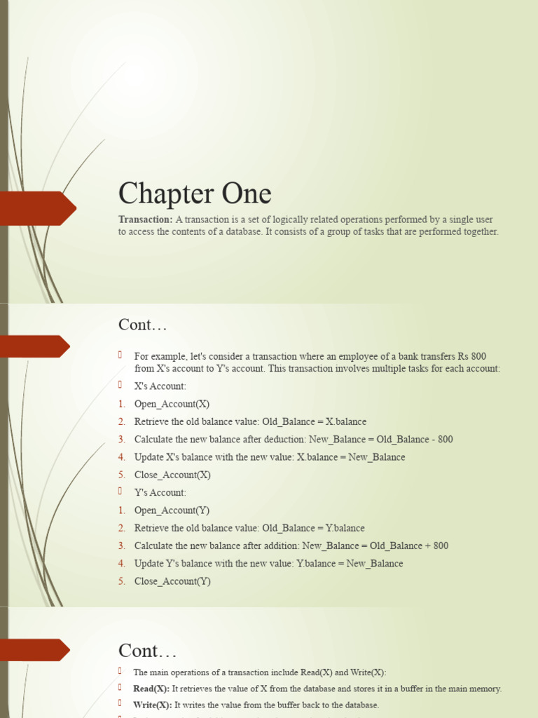 Transaction: A transaction is a set of logically related operations performed by a single user