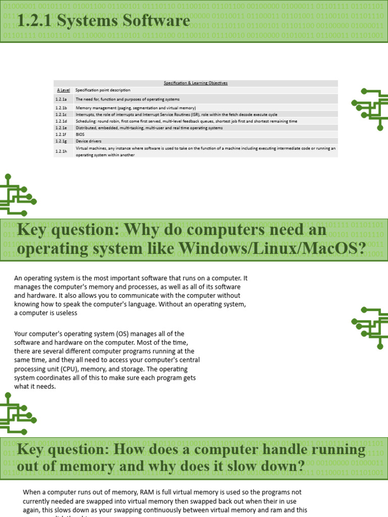 1.2.1a The need for, function and purposes of operating systems