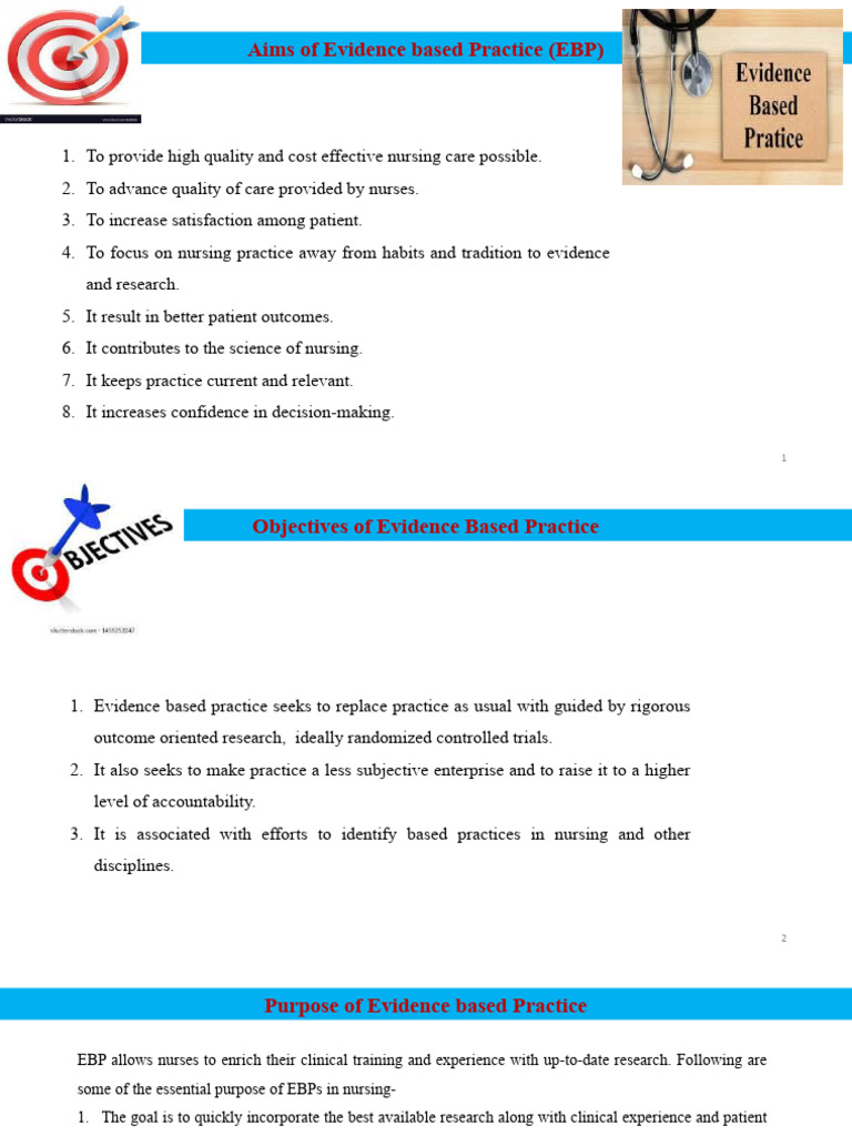 1. Evidence based practice seeks to replace practice as usual with guided by rigorous
