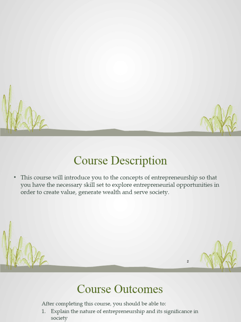 • This course will introduce you to the concepts of entrepreneurship so that