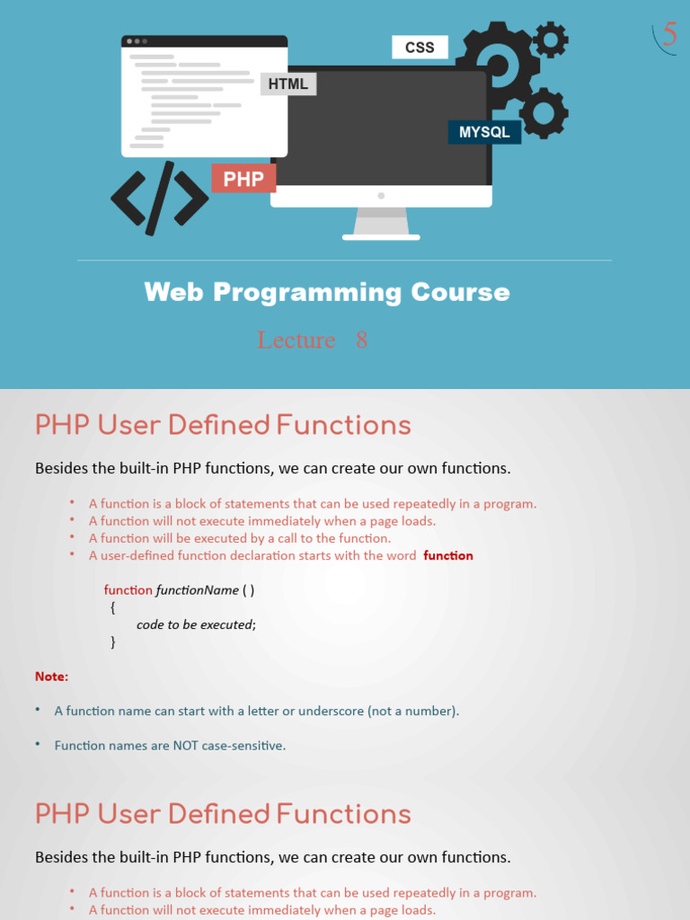 • This is a strong point of PHP which helps in creating functions, headers, footers, or elements that can