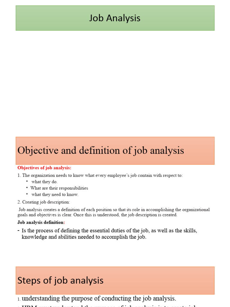 - Is the process of defining the essential duties of the job, as well as the skills,
