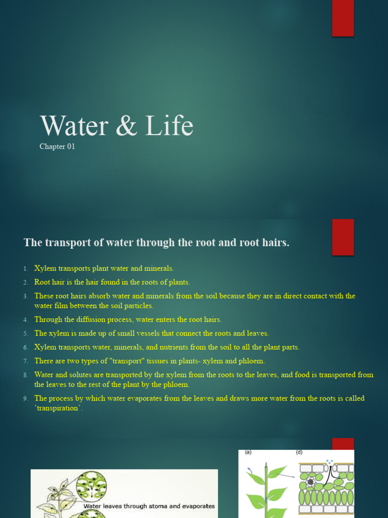 9. The process by which water evaporates from the leaves and draws more water from the roots is called