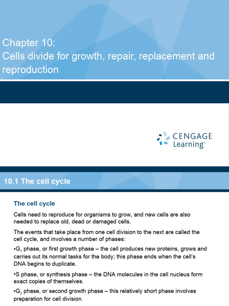 carries out its normal tasks for the body; this phase ends when the cell’s