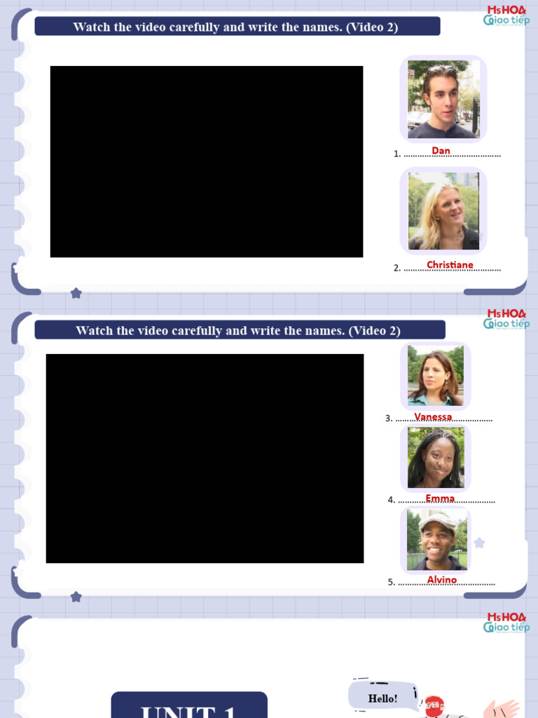 Watch the video carefully and write the names. (Video 2)