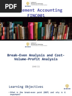6. to assess the impact of changes in fixed cost, variable cost or selling price on BEP and