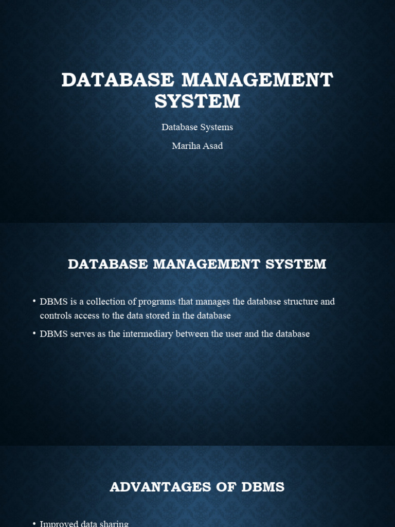 • DBMS is a collection of programs that manages the database structure and
