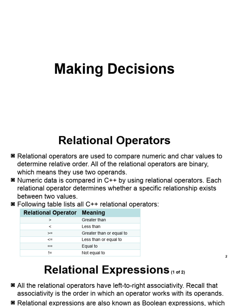 ◙ All the relational operators have left-to-right associativity. Recall that
