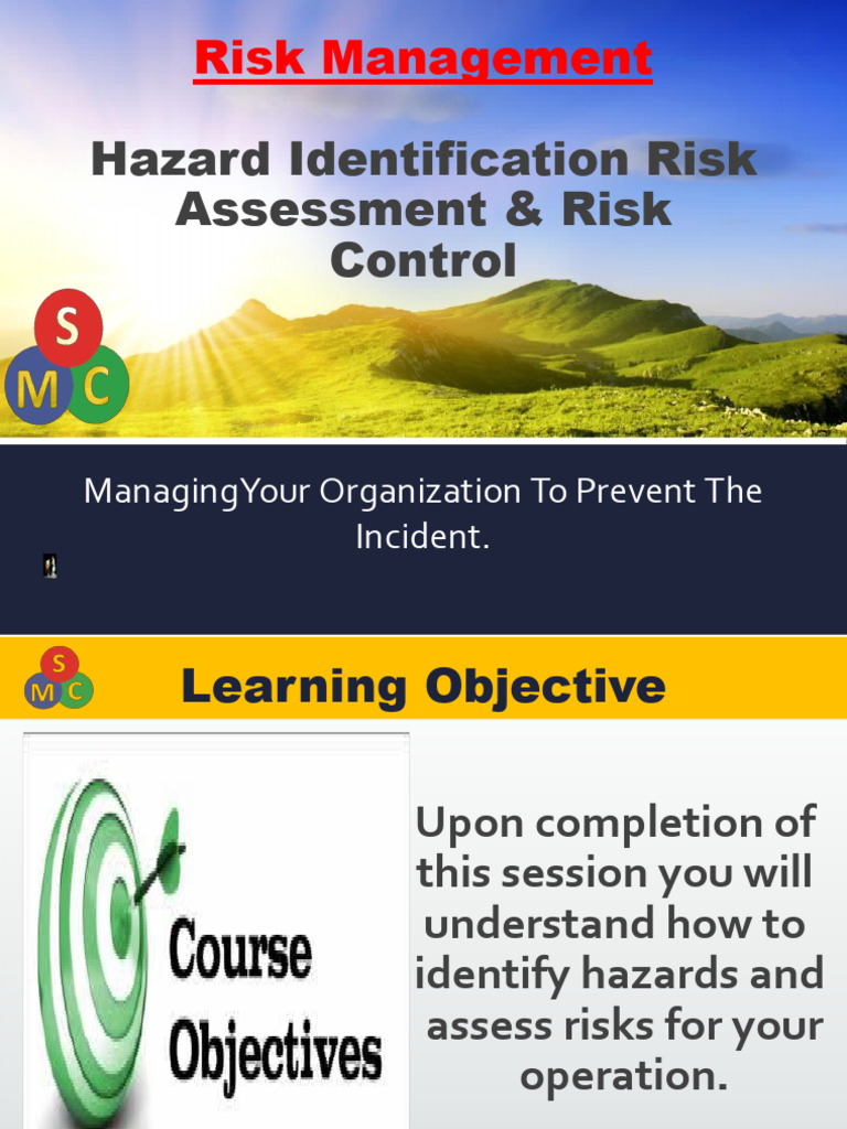 NO WORK HAZARDS EFFECT CURRENT S L R RECOMMENDED RISK CONTROL RELATED LAW (OSHA & FMA)