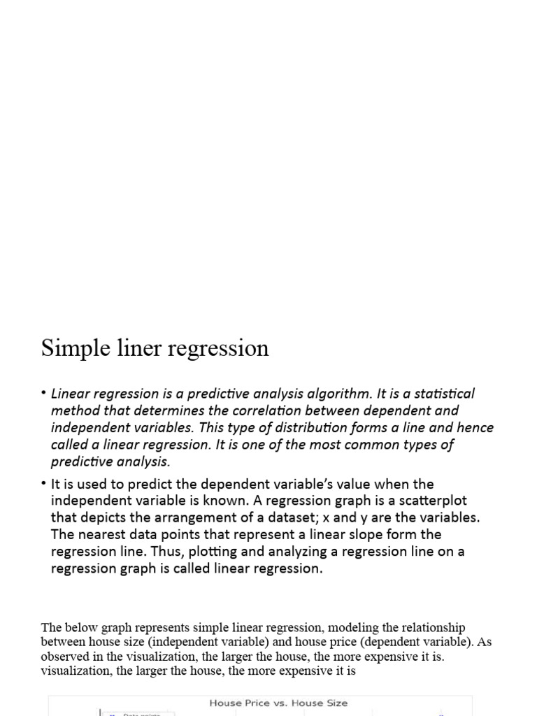 • Linear regression is a predictive analysis algorithm. It is a statistical