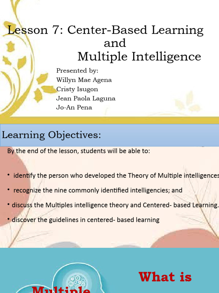 • discuss the Multiples intelligence theory and Centered- based Learning.