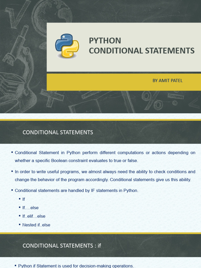 change the behavior of the program accordingly. Conditional statements give us this ability.