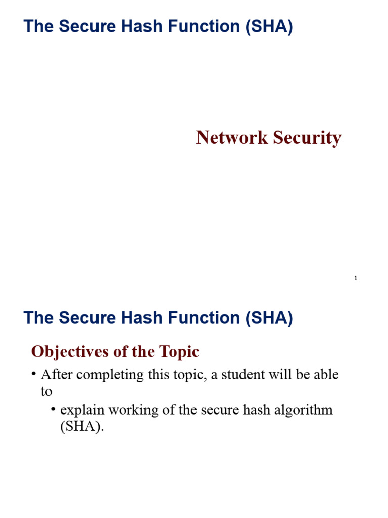 The Secure Hash Function (SHA)