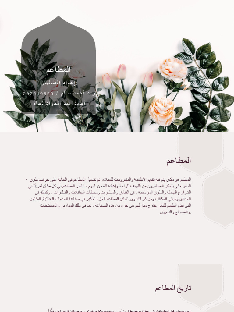 ∙ المطعم هو مكان يتم فيه تقديم األطعمة والمشروبات للعمالء .تم تشغيل المطاعم في البداية على جوانب طرق