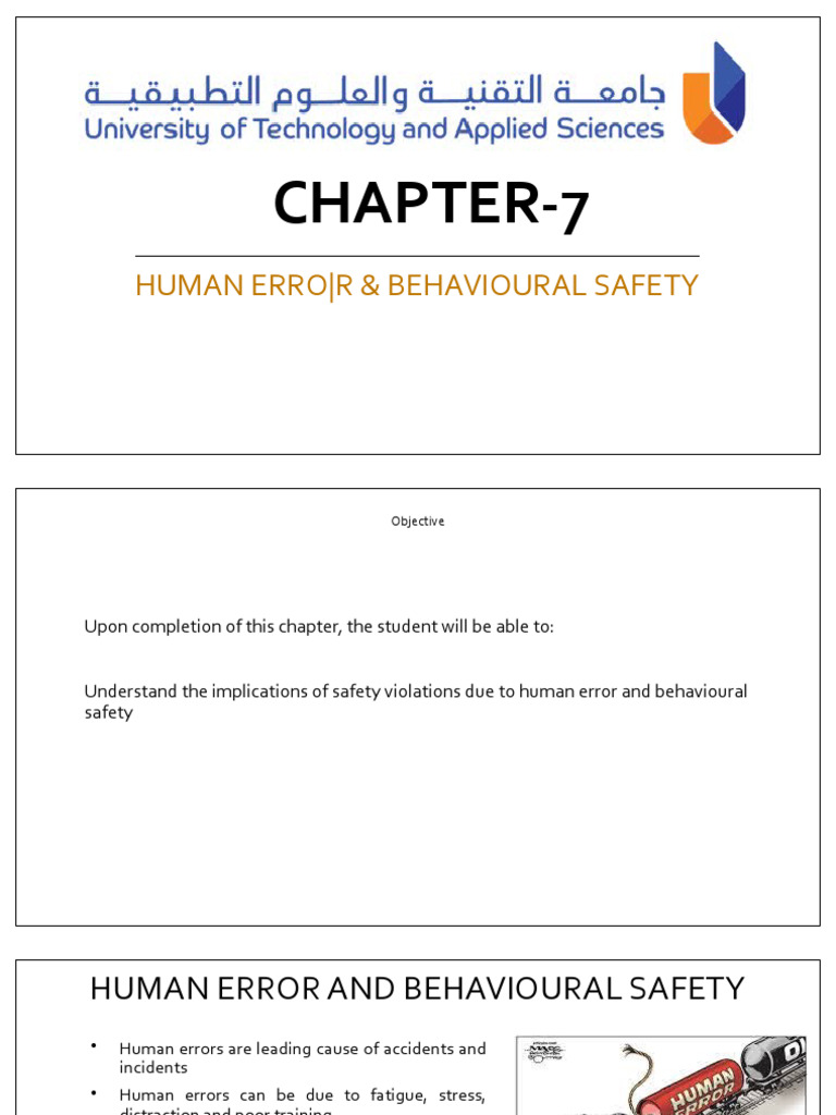 HUMAN ERROR AND BEHAVIOURAL SAFETY