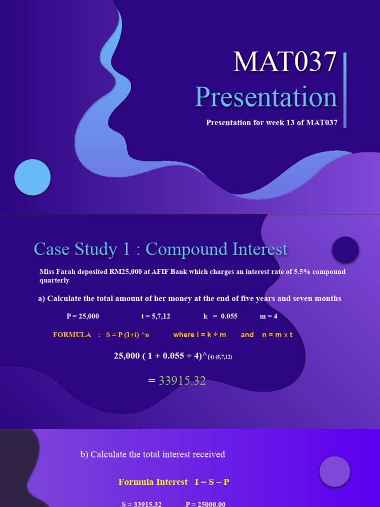 FORMULA : S = P (1+i) ^n where i = k ÷ m and n=mxt