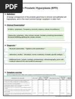 Benign prostatic hyperplasia (BPH) is a noncancerous enlargement of the prostate gland that is common among aging men. The exact causes are unknown but factors like age, family history, and hormones are thought to play a role. Symptoms of BPH include difficulty starting or stopping urination, a weak urine stream, and frequent urination, especially at night. Diagnostic tests like a digital rectal exam, PSA test, and ultrasound can identify BPH and rule out prostate cancer as a potential cause of symptoms. While BPH usually progresses slowly, complications in rare cases can include urinary retention requiring emergency surgery.