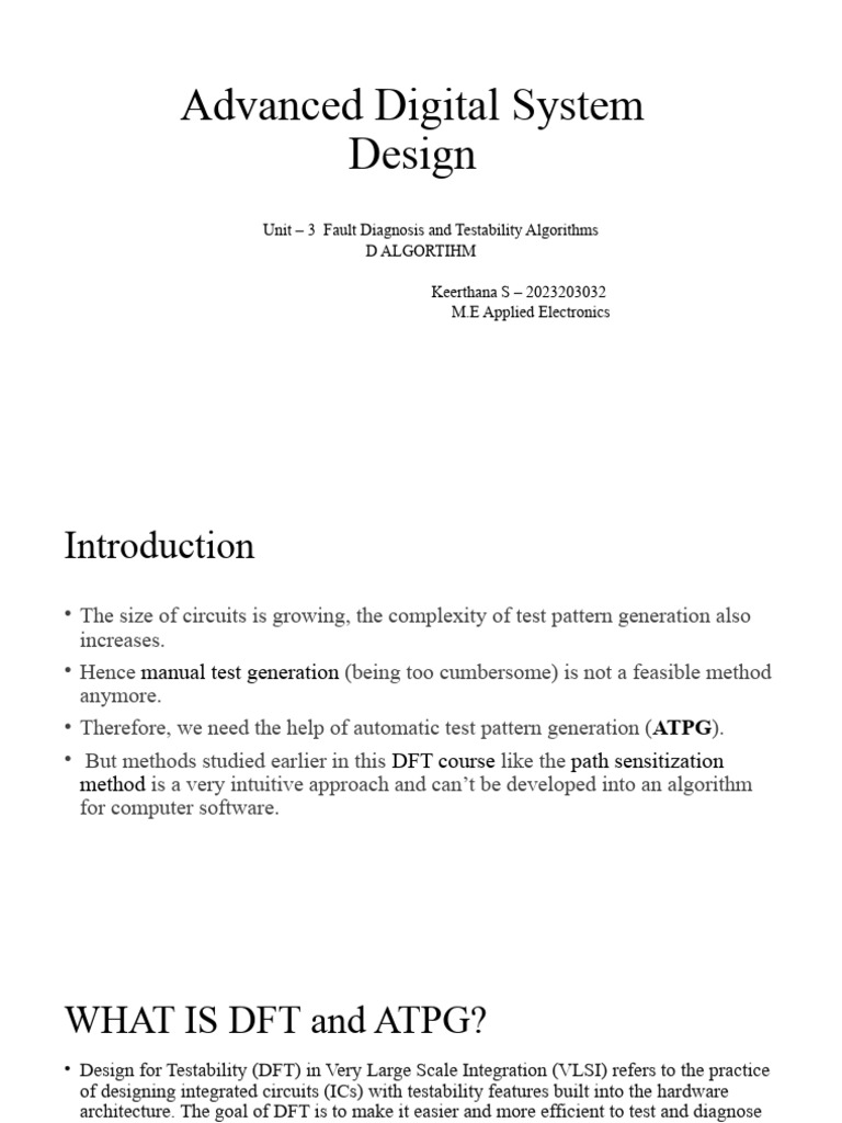 • In this article, we studied one of the very first algorithms for combinational ATPG, i.e., D