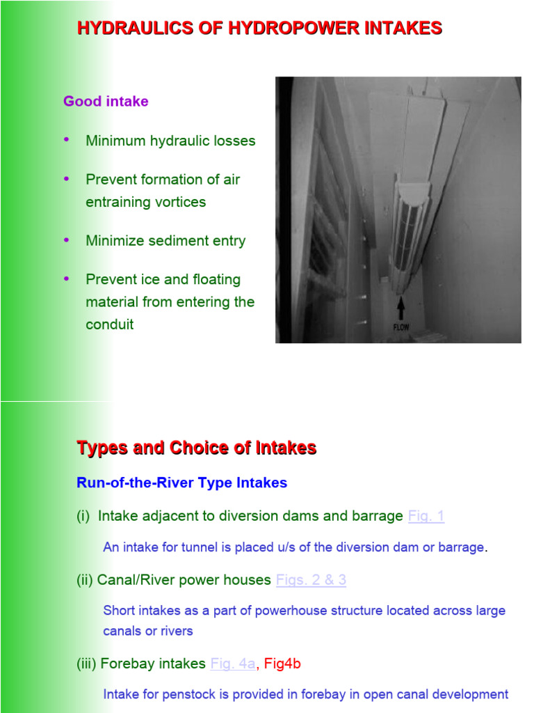 Hydraulic Design of Intakes